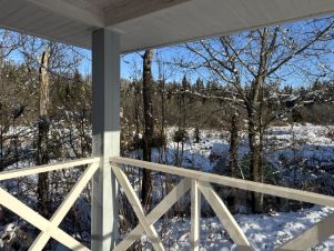 Фундамент: сваи винтовые 3,5 м глубина, забетонированные. Выполнено дополнительное утепление полов под домом по всему периметру.