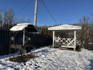 По периметру дома ливневка, отмостка, дорожки из натурального камня, освещение, скрытая дренажная система, беседка с освещением и оборудованная мангальная зона.