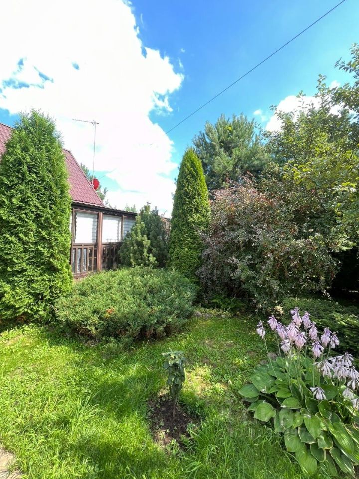 Участок 8 соток. ИЖС, земли населенных пунктов. Хвойные, лиственные деревья, многолетние цветы, газон.Деревянная открытая беседка. Аптекарьский огород с высокими грядками, стеклянная теплица. Участок огорожен забором на бетонном основании, автоматические ворота, вымощены дорожки, стоянка для машин. Гараж на 2 авто с пульта. Дренаж. Охраняемая территория.