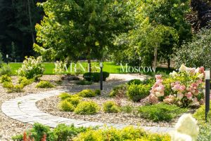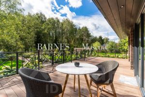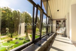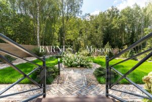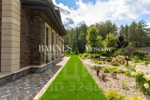 Участок ровный, прилесной, с ландшафтными работами: завезен плодородный грунт, сделан дренаж участка, посажен и перезимован в течении трех лет фруктовый сад, декоративные деревья и цветущие кусты, сделано разновидное освещение фасада дома, установлено освещение участка, смонтирован автополив Hunter, установлено видеонаблюдение по всему участку (9 камер), сделано мощение дорожек брусчаткой Вайт Хилс на бетонном основании.