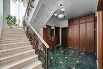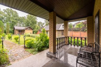Дом построен из качественного кирпича (это не облицовка). В отделке использовались натуральные материалы: мрамор, гранит, дерево, кирпич. Дорогая итальянская мебель, текстиль.