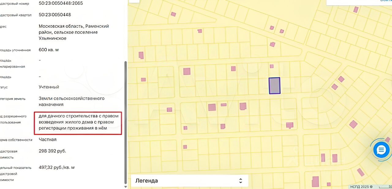 для дачного строительства с правом возведения жилого дома с правом регистрации проживания в нём.