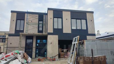 Новый, современный дом, отделка вайтбокс. Просторная кухня-гостиная со вторым светом, высота потолков 7,5 м., высота остальных потолков 3,8 м., панорамное остекление, выход на террасу и участок. Внешняя отделка ригельная плитка + декоративная штукатурка, автоклавный газобетон 400 мм + 100 внешнего утепления.