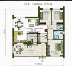 Этажи: 1 Спальни: 3 Санузлы: 2 Общая площадь: 118 м²