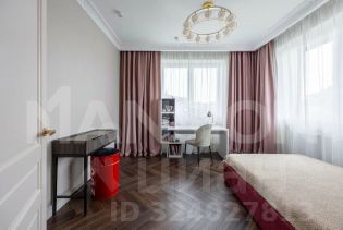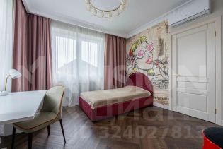2 этаж - мастер-спальня с двумя окнами, стены которой украшает панно Affresco, обои с текстурой льна,и гардеробная с окном, переходящая в мастер сан узел с окном и акцентной стеной из крупноформатного керамогранита Patagonia. Детская комната с двумя окнами выполнена в стиле Pop Art и имееет живописный вид на посёлок. Отдельно на втором этаже располагается детская гардеробная с окном, сан.узел со вторым светом. Так же на втором этаже располагается оборудованный кинозал.