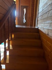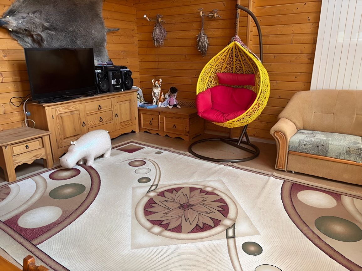 В доме оборудована кухня в деревенском стиле, сосна, есть плита, микроволновая печь, холодильник, стиральная машина. Возможно рассмотреть вариант с техникой и мебелью. Заезжай и живи.