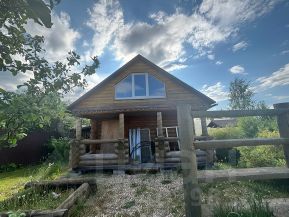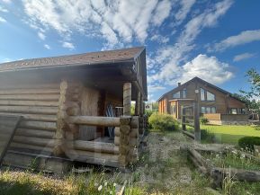 На участке также гостевой дом. Недостроен. Бревно. Можно сделать баню. Под крышей. Застеклен второй этаж.
