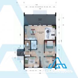 В доме кухня-гостиная площадью 34 кв. м с выходом на террасу 26 кв. м, три комнаты 12 кв. м, 12 кв. м и 14 кв. м, а также санузел, техническое помещение, холл и тамбур.