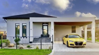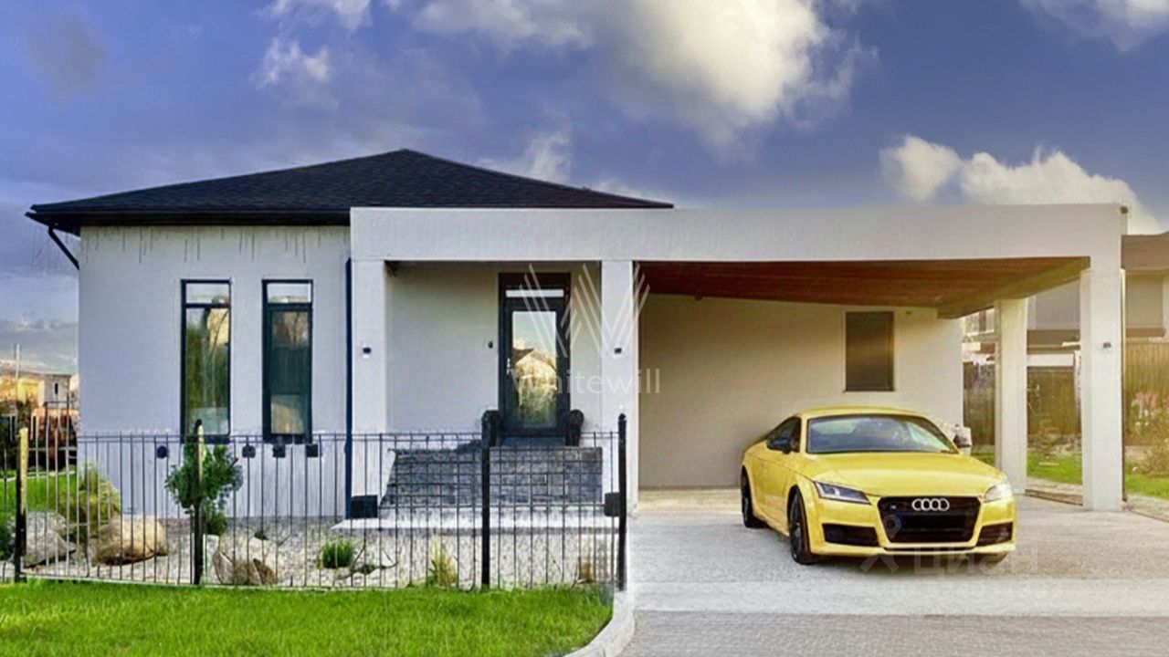 Планировка включает просторную гостиную, объединённую с кухней-столовой с удобным островом, мастер-спальню с гардеробной и две дополнительные спальни. Оставить машины можно под двухместным навесом. На участке вдохните запах свежескошенной травы и любуйтесь декоративными кустарниками у дома. Вечерние посиделки на террасе станут ещё более романтичными благодаря мягкой уличной подсветке.