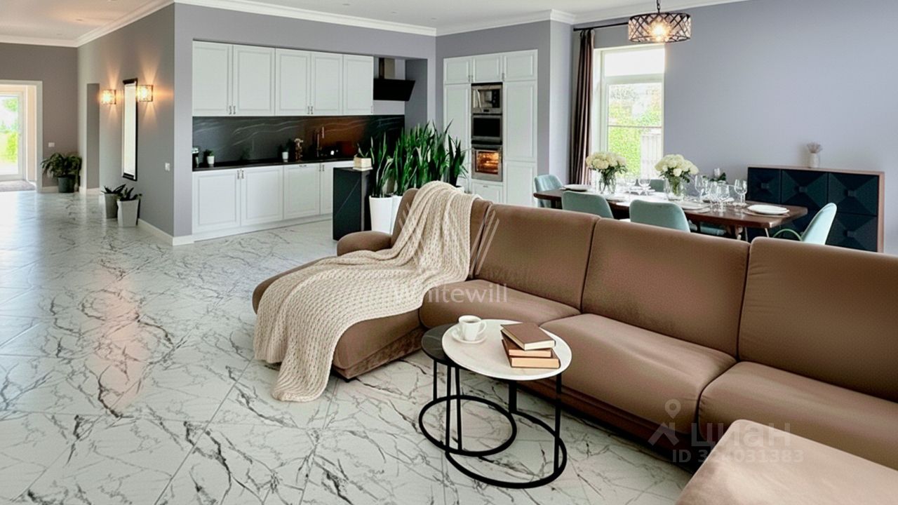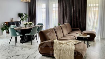 Павловы озёра. Загородный коттедж площадью 187 м² расположен на полевом участке 10 соток в тихой части посёлка. Современный одноэтажный фасад с окнами в пол облицован белоснежной штукатуркой. Интерьеры выдержаны в светлых, спокойных тонах, а также укомплектованы комфортной мебелью и встроенной бытовой техникой Siemens и Bosch. Тёплые водяные полы обеспечивают приятный микроклимат.