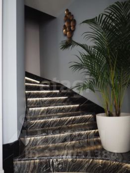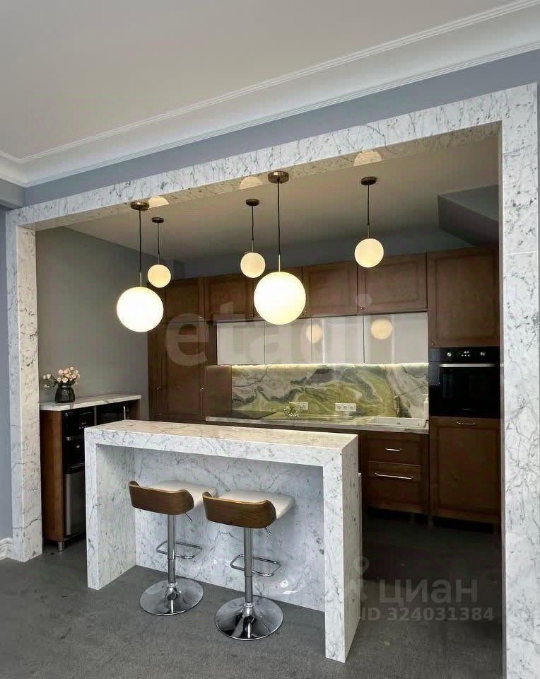 В отделке использованы исключительно премиальные материалы: мрамор, оникс, гранит и массив ценных пород дерева. Кухня оснащена техникой премиум-класса и столешницей из оникса, а во всех санузлах установлена брендовая сантехника.