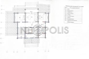 1 этаж: прихожая, гардеробная, холл, кухня-столовая, гостиная с выходом на просторную угловую террасу, каминный зал, спальня, санузел, постирочная, бойлерная.