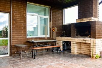 - Просторная кухня-гостиная с выходом на благоустроенную террасу, оснащённую мангалом