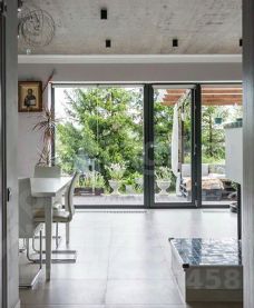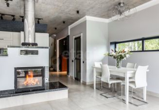 Просторная кухня-гостиная с дровяным камином создает сочетание уюта, живого огня и теплой, гостеприимной атмосферы. По всему первому этажу установлены теплые полы, которые в сочетании с камином создают комфортный климат в доме, особенно в холодное время года.