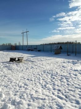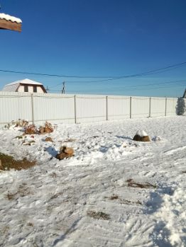 Сделана подъездная дорога, установлен электро-шлагбаум. Участок выровнен, огорожен профлистом, вырыт колодец и заведено электричество.