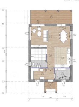 Очень удобная планировка первого этажа вместила в себя кухню с примыкающей к ней гостиной с выходом в патио и столовой, просторный холл с лестницей, гардеробную и котельную.