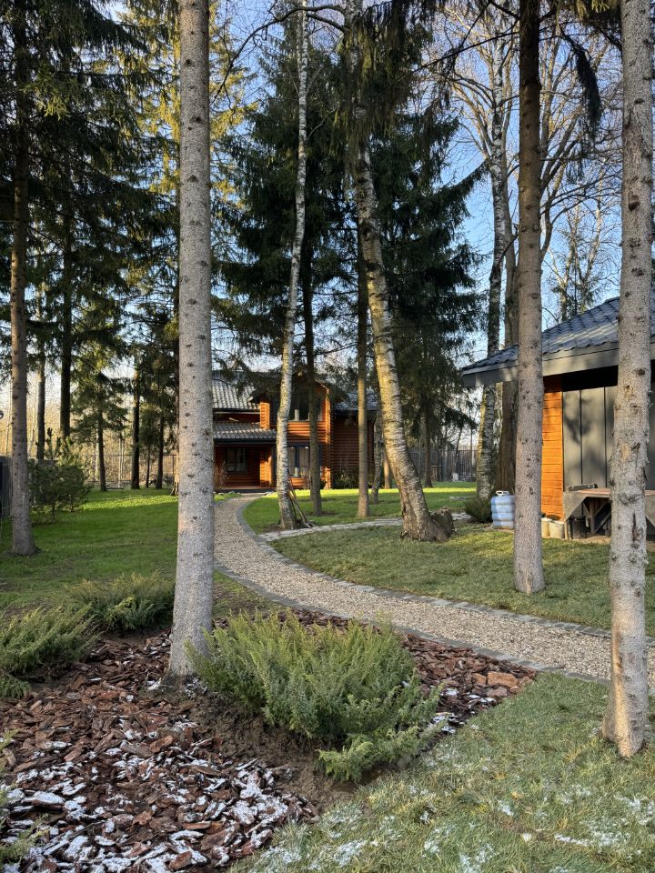 Новый дом из бревна большого диаметра 2025 года постройки. Можно сразу жить. Фундамент монолитная плита. Окна из лиственницы. Отопление газом. Теплые полы. Высокие потолки. Натуральные краски Biofa, итальянский керамогранит. Большой навес с зоной хранения. Баня с террасой. Лесной участок с вековыми елями, березами и вязами. Выполнен ландшафт, дренажные и ливневые системы. Небольшой камерный поселок из 40 домов на больших участках с новыми дорогами, освещением, с проводкой подземной по всему поселку (никаких столбов с проводами). В КП охрана, освещение, центральные коммуникации, Небольшие взносы. На территории есть футбольное поле и спортивный зал, каток, детские площадки и прогулочные зоны. Все соседи построились. Свободных участков нет. Поселок формата премиум. Прекрасные виды из окон. Никакой грязи. Отличное расположение вблизи школ Зеленограда и Истры. Частная Гимназия в Огниково в 10 минутах. До Москвы без пробок 45 мин. Ехать можно как по Новой Риге, так и по Ленинградке, Волоколамке, Пятнице, что огромный плюс в выборе маршрута. так как Новая Рига сильно перегружена. До Центра Зеленограда 20-25 минут. До модных ресторанов Новой Риги (аутлет Покровское ) 30 мин езды.