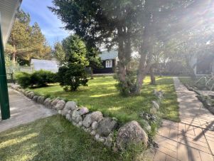 Земельный участок 6 соток, ухоженный, ровный, засеян газоном, правильной формы, со всех сторон огорожен новым забором, въезд оборудован воротами и калиткой, дорожки по участку, мангальная зона, выложены тротуарной плиткой. Круглогодичный подъезд к участку. Участок сухой. Имеется зона парковки авто. Посажены красивые деревья и кустарники.