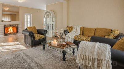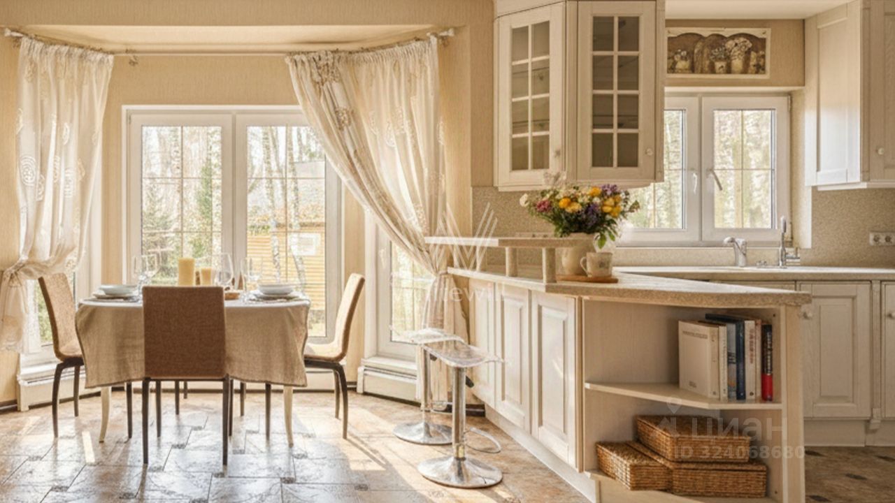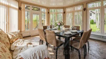Планировка включает просторную гостиную с камином, функциональную кухню, столовую с панорамными окнами и четыре уютные спальни. Кроме того, на территории построены двухэтажная баня из сруба и двухместный гараж с квартирой для персонала. На участке вдохните запах свежескошенной травы, прогуливаясь по мощёным дорожкам в тени высоких берёз, и любуйтесь декоративными кустарниками. Ночные посиделки в беседке-барбекю станут ещё более романтичными благодаря уличной подсветке сада.