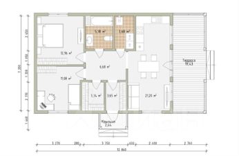 Планировкой предусмотрена закрытая терраса, 2 спальни, гостиная, кладовая, санузел и тех. Помещение, в котором расположены все инженерные системы.