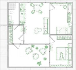 Планировкой предусмотрена закрытая терраса, 2 спальни, гостиная, санузел и тех. Помещение, в котором расположены все инженерные системы.