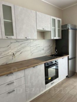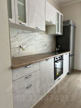 Кухонный гарнитур с кухонной техникой (холодильник, варочная индукционная панель, духовка, вентиляция).