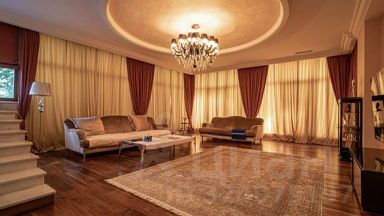 Особняк общей площадью 1250 кв.м. Дом построен в 3 этажа. Фасад облицован травертином. В доме выполнена дорогая отделка в дизайнерском стиле Ар-Деко. На полу панно из нескольких видов мрамора. Полы второго этажа из дорогих сортов массива дерева. Итальянская мебель Vissionere, кухня Arca, люстры Baroviere&Tosso, сантехника Vissionere. Грамотная планировка со вторым светом в центре дома. Просторные комнаты и высокие потолки. На участке 35 соток выполнен ландшафт и находится отдельно стоящий гостевой дом со SPA-зоной и барбекю.