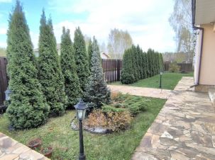На участке: дом, беседка с мангалом, детская площадка, площадка для надувного бассейна, разбито несколько грядок, парковочные места для 2-х автомобилей, выполнен ландшафтный дизайн.