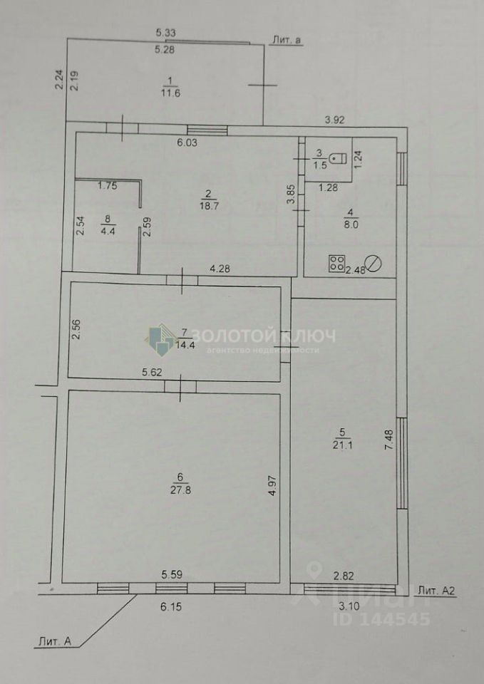 Комнаты проходные: 27,8 м² / 14,4 м² / 21,1 м²