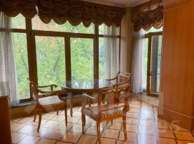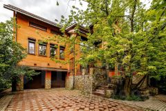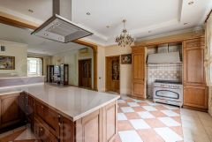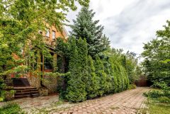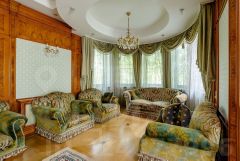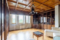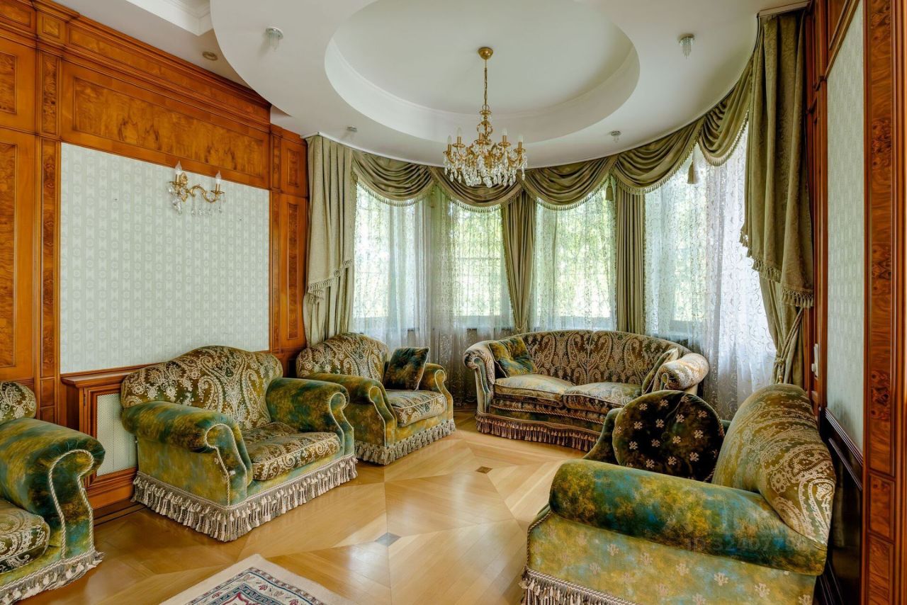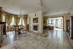 Главный жилой дом — 651 м², классическая архитектура, монолит, фасады из кирпича и блока. Высокие потолки 3,1 метра, планировка с двумя уровнями жилого пространства, мансардой и полноценным цокольным этажом. В доме: две гостиные с каминами, три спальни, два кабинета, две комнаты-гардеробные, библиотека, бильярдная, спортзал, открытый балкон - терраса, финская сауна с бассейном (купель), теплый гараж на два автомобиля.