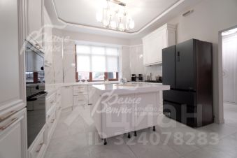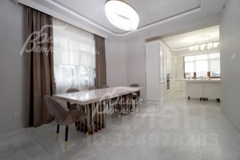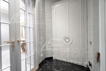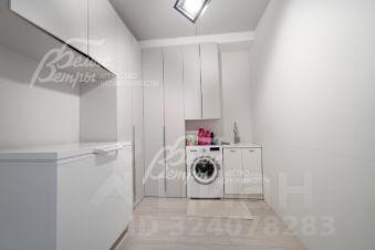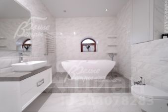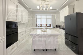 Мебель, оборудование: интерьер дома укомплектован фирменной мебелью российского и итальянского производства. Корпусная мебель изготовлена из массива дерева, встроенные шкафы также из массива дерева с эмалированным покрытием, в спальне итальянские диваны. На кухне гарнитур в классическом стиле из массива ясеня (толщина фасадов 22 мм, фурнитура BLUM) с островом, столешница из искусственного камня, встроенная техника Gorenje, широкий холодильник TOSHIBA и морозильник Liebherr. В столовой обеденная группа на 8 персон, стол из слэба мрамора. Интерьер помещений дополняют люстры, настенные светильники и шторы. В санузлах установлена вся сантехника и смесители преимущественно брендов Villeroy & Boch, в одном из санузлов дорогостоящая ванна Villeroy & Boch La Belle. Комплектация дома мебелью обсуждается индивидуально.