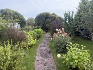 * Участок полностью благоустроен: разбит газон, высажены плодовые деревья (яблони, груша, черешня, слива, вишня) и кустарники (малина, чёрная/красная/белая смородина, голубика)