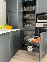 -Просторная кухня из массива дерева с дорогой фурнитурой