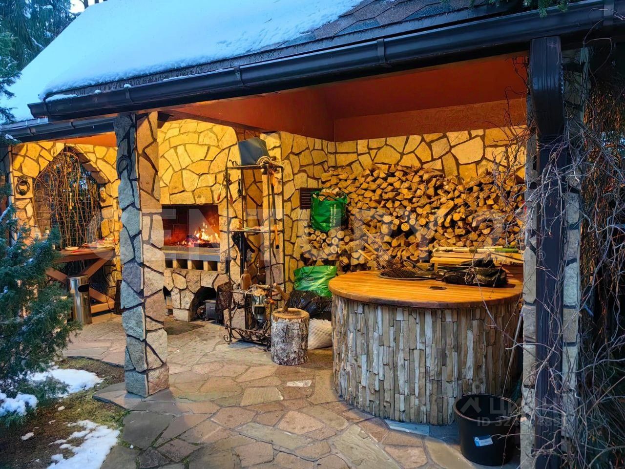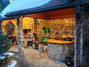 Крытый круглогодичный бассейн с зоной отдыха, пергола для летнего отдыха, отдельная беседка, зона барбекю, дровница, летняя кухня с тандыром, детская площадка. На территории также расположен гостевой дом с верандой, спальней и санузлом. Участок огорожен, установлены автоматические ворота, На участке растут грибы, по территории живут белочки.