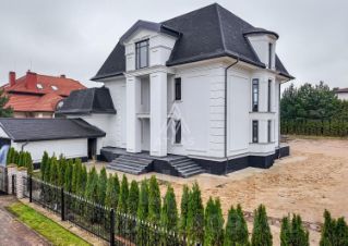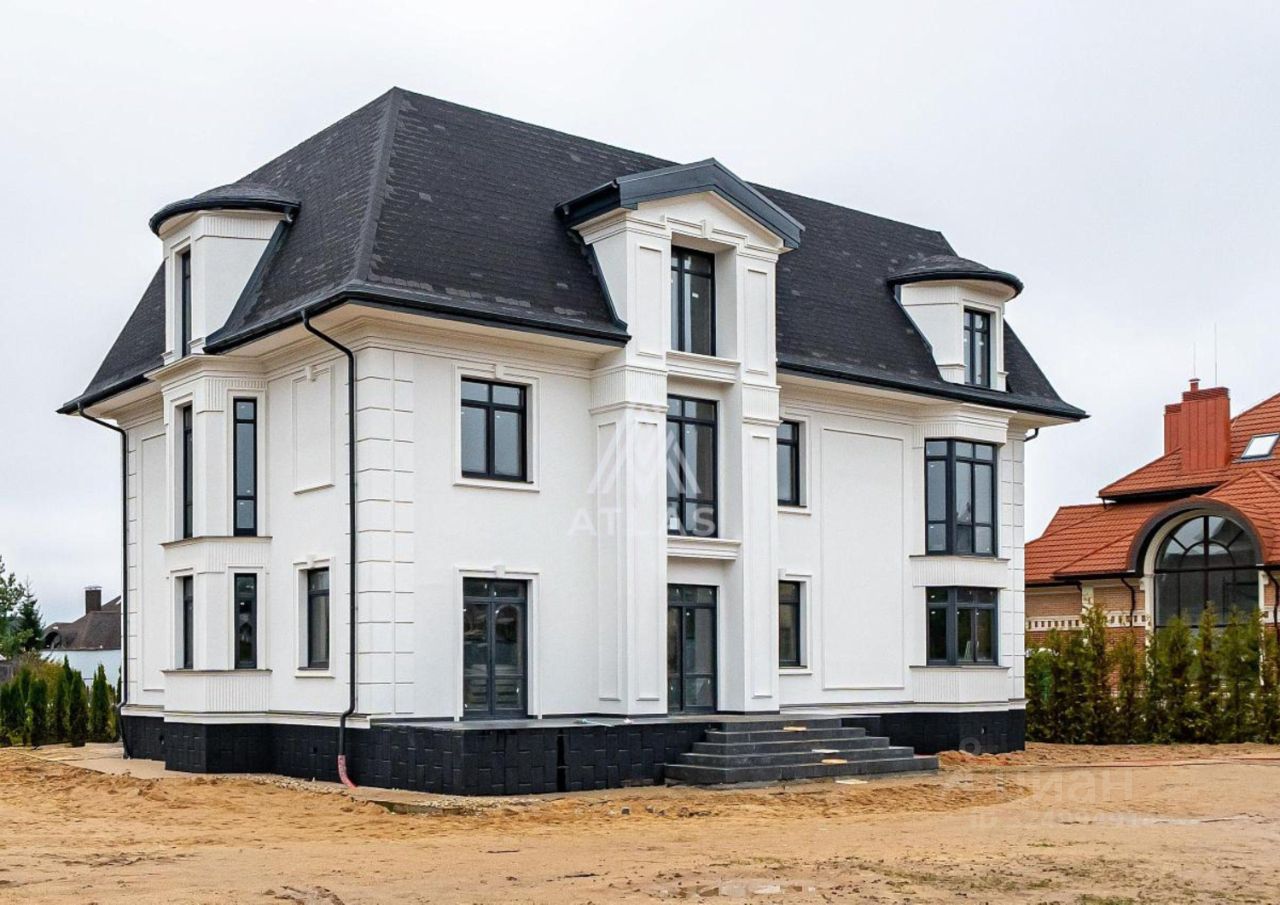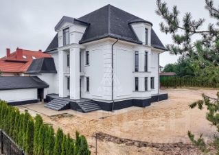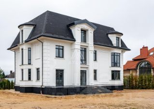 Архитектура дома выдержана в неоклассической эстетике: строгая симметрия, выразительные объёмы и спокойная палитра фасадов формируют впечатление солидности и визуального баланса.