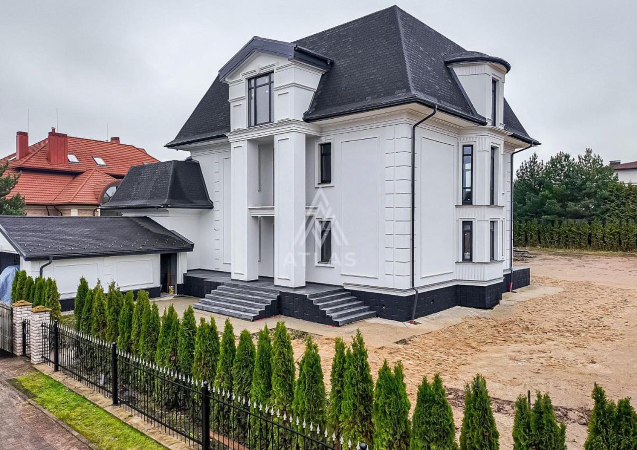 Дом площадью 520 м² с 5-ю спальнями расположен на видовом участке 21 сот в коттеджном поселке Крона. Лаконичные линии неоклассики и масштаб участка создают ощущение уединённого загородного ритма, где форма и свет работают на ощущение спокойствия.
