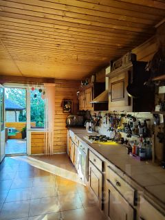 Первый этаж (полностью теплые полы): предбанник, большой хол, котельная/постирочная, санузел, кабинет, большая кухня из массива в стиле рустик объединенная с гостиной, световые инсталляции из слебов, выход на большую крытую веранду.