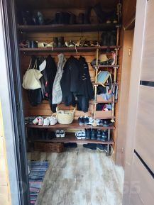 Небольшая отдельностоящая баня, отличная дровяная печка (топим за 30 мин даже зимой), парилка из необработанной липы (отлично держит высокую влажность), душ с обливным ведром, санузел, комната отдыха.