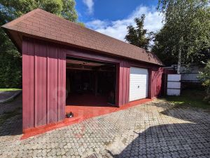 -каркасный гараж на 2 автомобиля размером 8 м х 8 м с двумя автоматическими воротами (отапливаемый), в который проведены вонабжения и канализация;