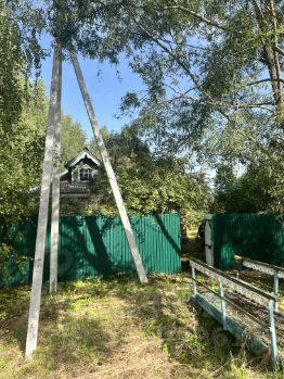 Участок ровный, без перепадов. На задней территории участка есть сад с плодовыми деревьями.