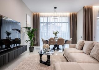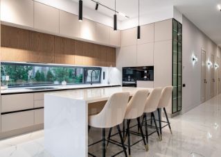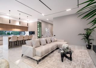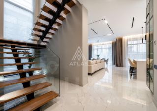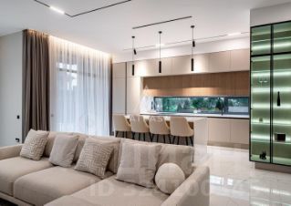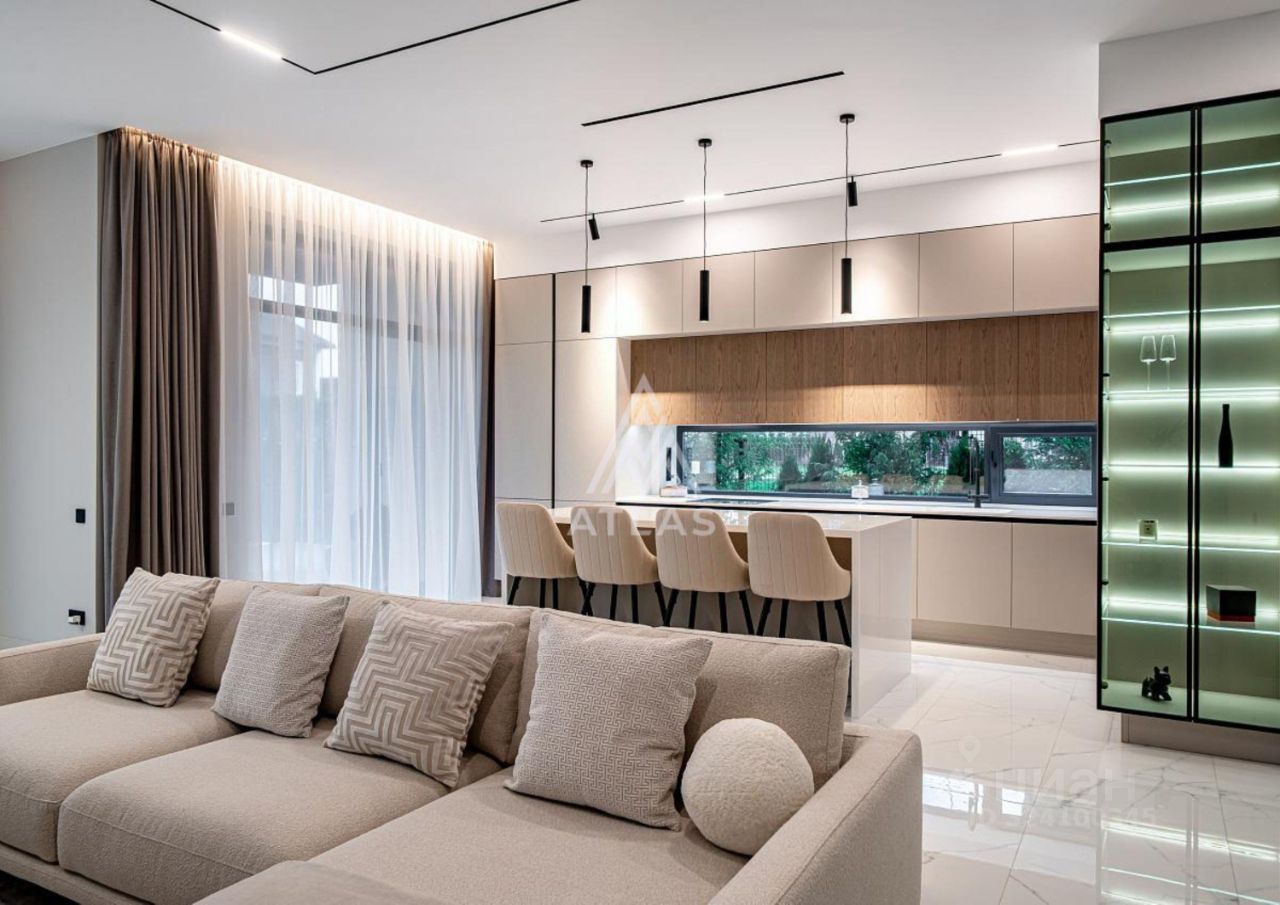 Дом площадью 310 м² с 4 спальнями расположен на ухоженном участке 6 соток в коттеджном посёлке Новорижский. Свет, чистые линии и открытые виды создают атмосферу спокойствия и мягкого ритма загородной жизни.