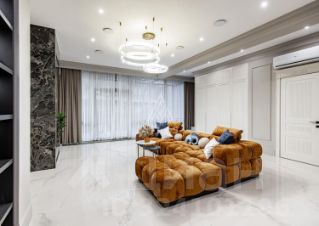 Интерьер выдержан в спокойной палитре и дополнен мягкими тактильными фактурами, что создаёт гармоничную визуальную композицию в каждой комнате.