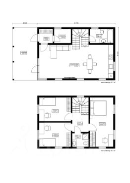 В доме кухня-гостиная площадью 41.5 кв. м с выходом на террасу 20 кв. м, три комнаты 11 кв. м, 11 кв. м и 17 кв. м, 2 санузела, техническое помещение, тамбур.