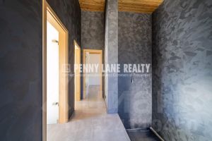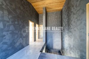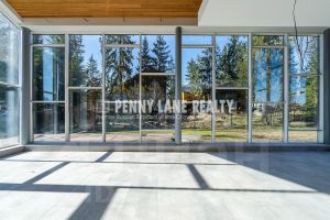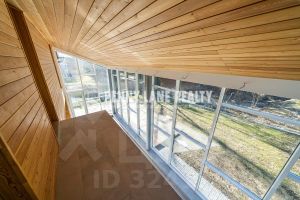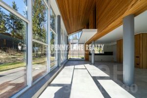 Планировка: 1 этаж - огромная зона кухни-гостинной-столовой с потолками в 6 метров и полностью стеклянной стеной, гостевой санузел, кабинет. 2 этаж - три спальни, два санузла, гардеробная комната, балкон.