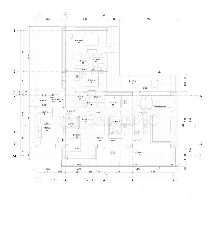 Высота потолков варируется от 3.30-3.90 согласно проекту. Большие панорамные окна создают прекрасный вид.
