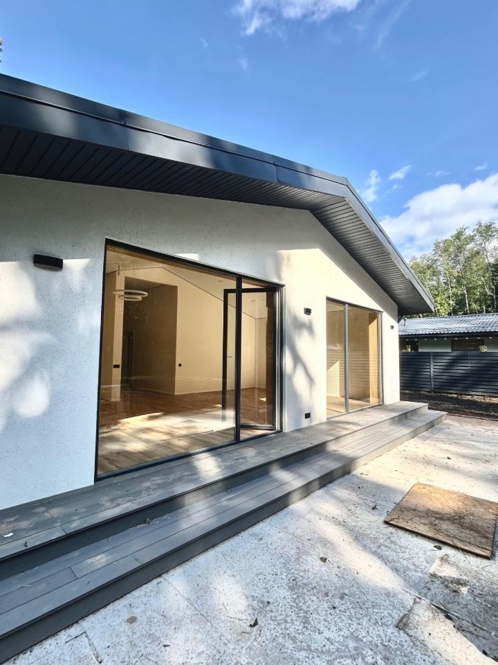 - Кухня-гостиная , мастер-спальня с гардеробной и санузлом, 2 спальни, санузел, оборудованная бойлерная-кладовая, холл, открытая терраса.