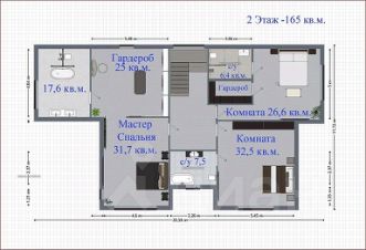 2 этаж: 3 изолированных мастер-блока, каждый со своей гардеробной и санузлом.