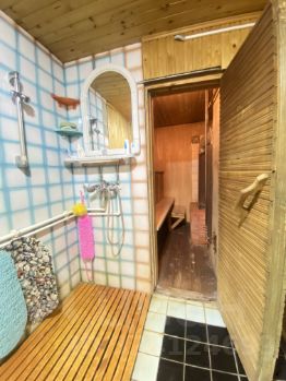 Здесь же расположена баня с душевой, где можно расслабиться после трудового дня и попить вкусного травяного чая в комнате отдыха. На участке имеется вместительное хозяйственное сооружение, где расположена постирочная и место хранения инструмента и садовой техники.