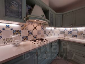 Дизайн кухни из массива дерева выполнен в стиле Прованс, очень приятного мятного цвета. Кухня с большой рабочей поверхностью и максимально вместительным объемом мебели.