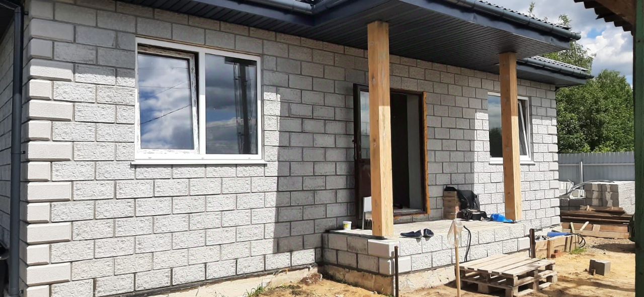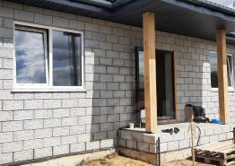 Дом построен из газосиликатных блоков D600. В доме 3 изолированные комнаты, санузел с бойлерной, коридор. Отдельный вход со стороны калитки и с другой стороны расположено крытое крыльцо.
